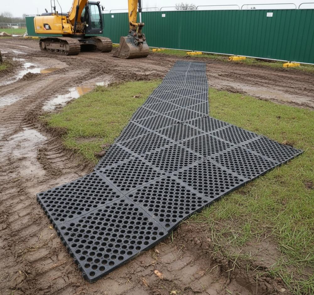 Construction Site Access Rubber Grass Mat — Heavy Duty Ground Protection for Contractors
