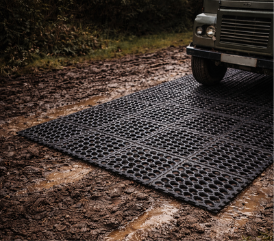 The mats distribute vehicle weight across the surface, preventing sinking. For regular vehicle use on very soft ground, use double-width coverage on wheel tracks.